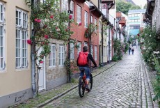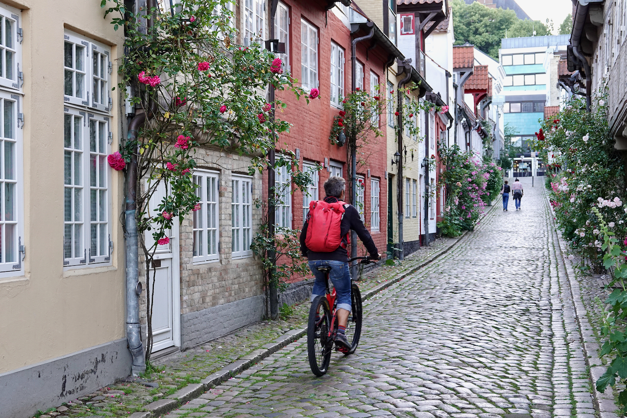 Weiter geht’s auf Deutschlands Autobahnen, ein kurzer Zwischenstopp bei IKEA in der Nähe von Berlin lässt uns alle zu Hause vergessenen Sachen nachkaufen, wir beschließen aufgrund der Windvorhersage den Besuch Berlins auf später zu verschieben. In der Nähe des deutschen Flensburgs, wo wir ebenfalls eine kleine Radtour in die „Stadt“ machen und nun vom Ortsbild ganz klar die nordischen Städte erreicht haben, fahren wir über die dänische Grenze.