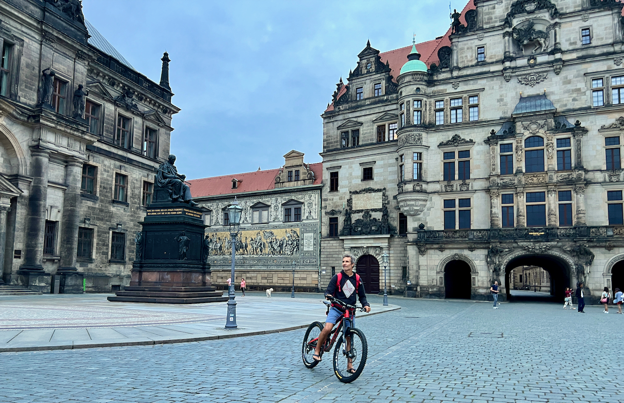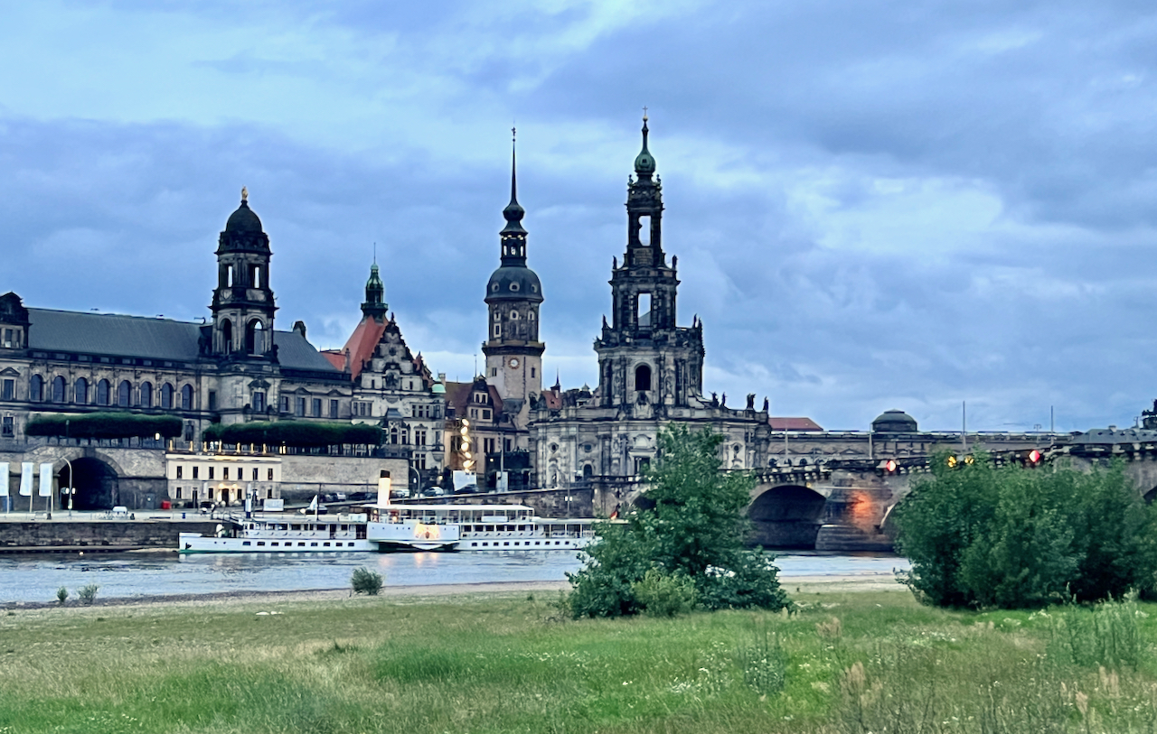 Wir starten in Wien bei fast 38 Grad mit dem Auto Richtung Norden, unerträglich heiß, mit Klimaanlage gut zu ertragen, holt uns schon bald das erste abkühlende Gewitter ein. Gut ausgestattet mit Kletterführern für Dresden und Umgebung müssen wir leider bald unsere Pläne umwerfen, denn das Wetter lässt das Klettern nicht zu, alles ist nass, es soll unbeständig bleiben. In der Nähe von Dresden angekommen, beschließen wir trotz Regens mit dem Rad in die Innenstadt hinein zu fahren (wir sind ja immerhin für die Reise nach Norwegen auf Regen eingestellt). Alles wirkt irgendwie ausgestorben und leer… Trotzdem zahlt sich der Abstecher aus, die Innenstadt gefällt uns gut.