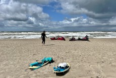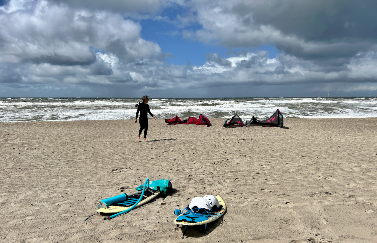 Die Kitesession in Hvide Sande ist wild, unberechenbare Chaoswellen, starker Wind, wir die einzigen Menschen weit und breit. Herausfordernd und etwas ungemütlich zu fahren, kann man hier hochkonzentriert doch ein wenig Zeit auf dem Wasser verbringen.
