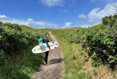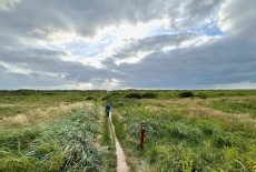 Weiter geht‘s mit einem Zwischenstopp in Ribe (ein sehr netter dänischer Ort, in dem wir gemütlich einen Kaffee in den Sonnestrahlen trinken) über den Nationalpark Wattenmeer nach Hvide Sande, einer sehr hübschen Dünenlandschaft – und wieder: ausgestorben, niemand da… eine Campingplatzbetreiberin erklärt uns, dass viele aufgrund des kühlen und nassen Wetters abgesagt haben – kein Wunder… es fühlt sich verdammt unangenehm und ungemütlich an. Ab hier tut es für den Rest der Reise auch nur noch der Winter-Neo, die Wassertemperaturen sind deutlich niedriger.