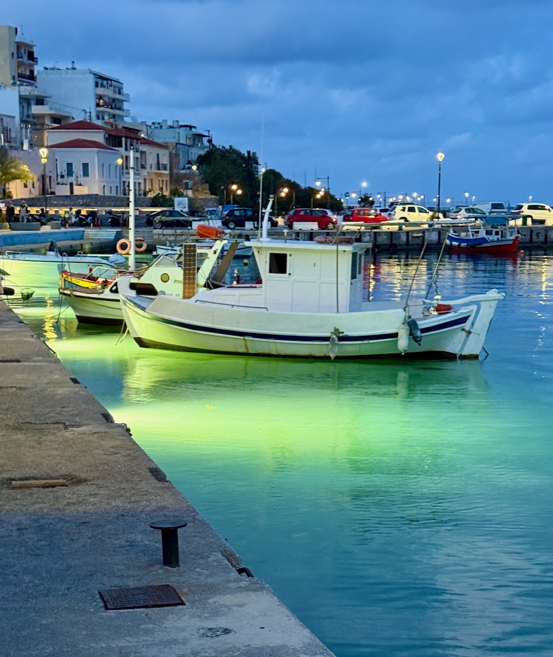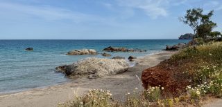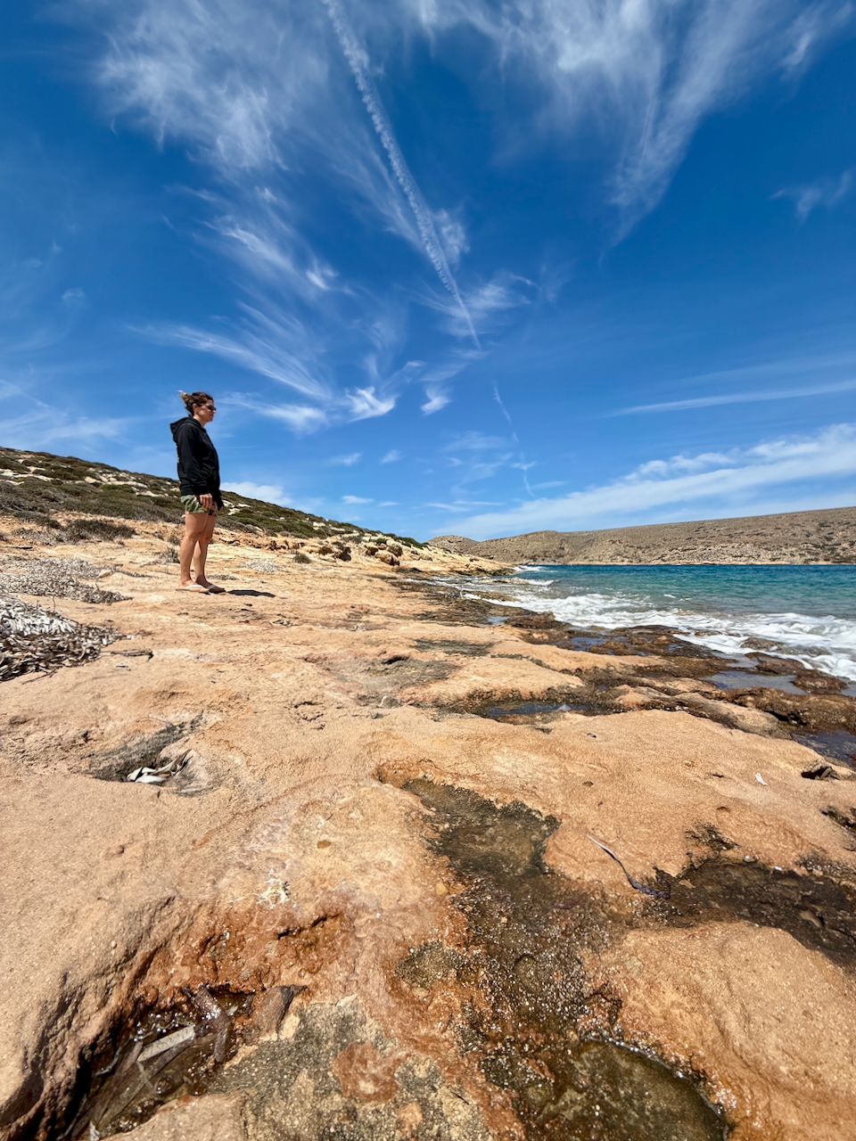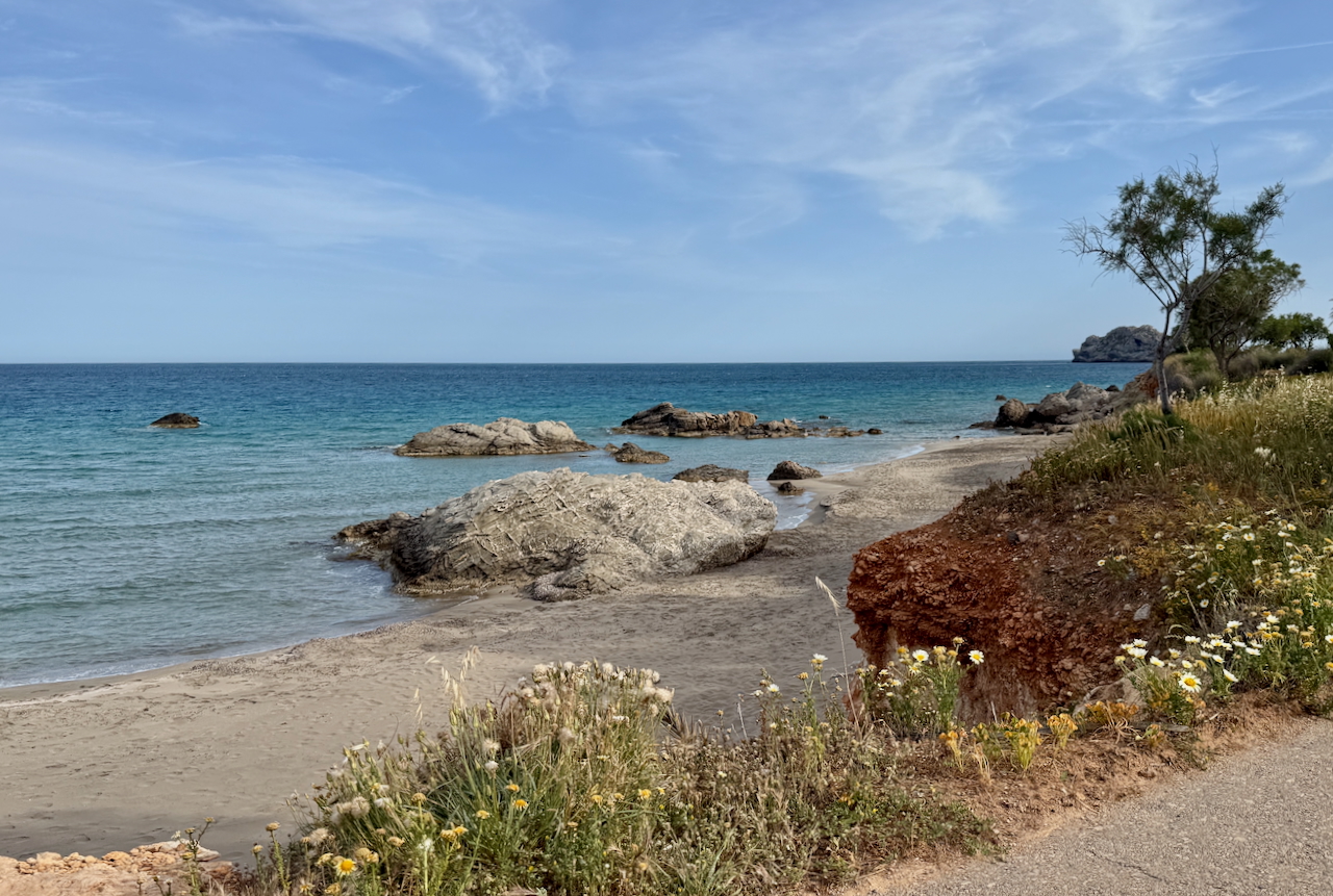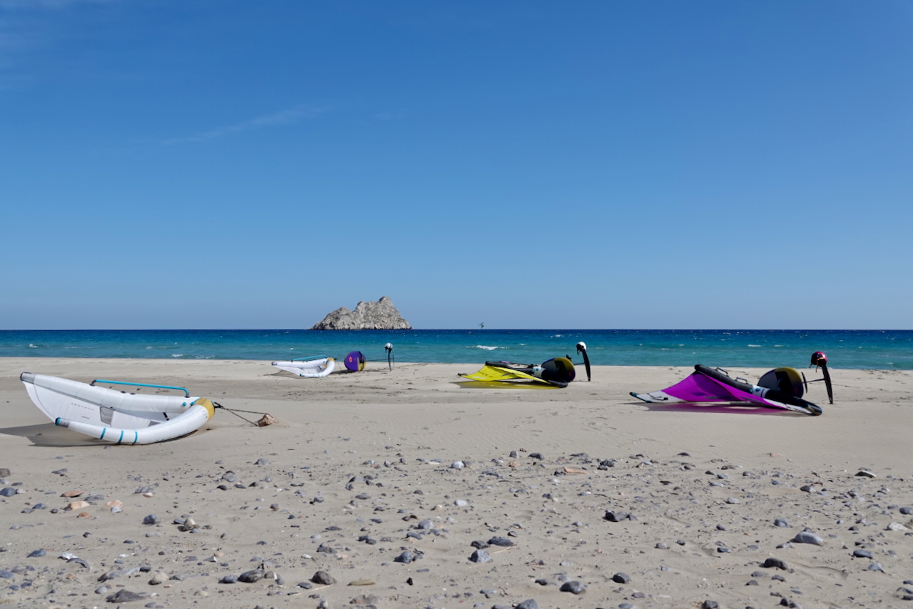Die ersten Tage sind kühl, stark windig, aber sonnig. Wir genießen an verschiedenen Spots ein paar außerordentlich schöne und manchmal auch herausfordernde Stunden wingfoilend auf dem Wasser. Am Abend gehen wir, warm angezogen, mit unseren Freunden in verschiedenen Tavernen in Palekastro und Sitia essen.