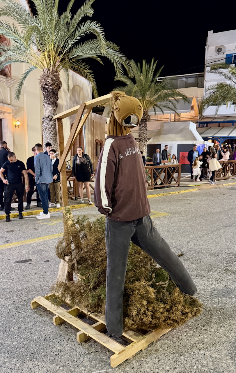 Neugierig sind wir auf die Osterzeremonie in Palekastro, von der uns schon vorher erzählt wird. Auf dem Hauptplatz vor der Kirche findet die Judasverbrennung statt. Unter ohrenbetäubendem Böllerlärm wird eine gehängte Puppe verbrannt. Ein verstörendes Erlebnis.
