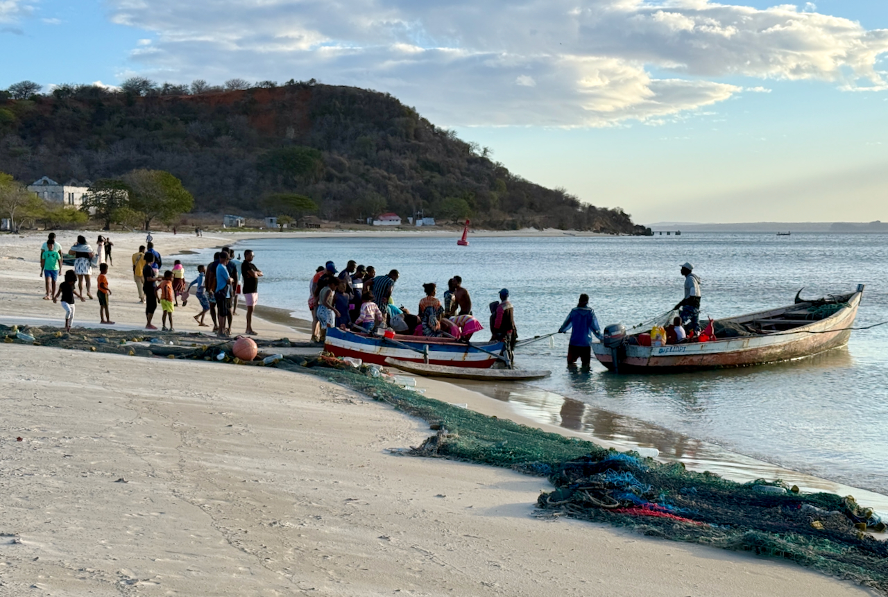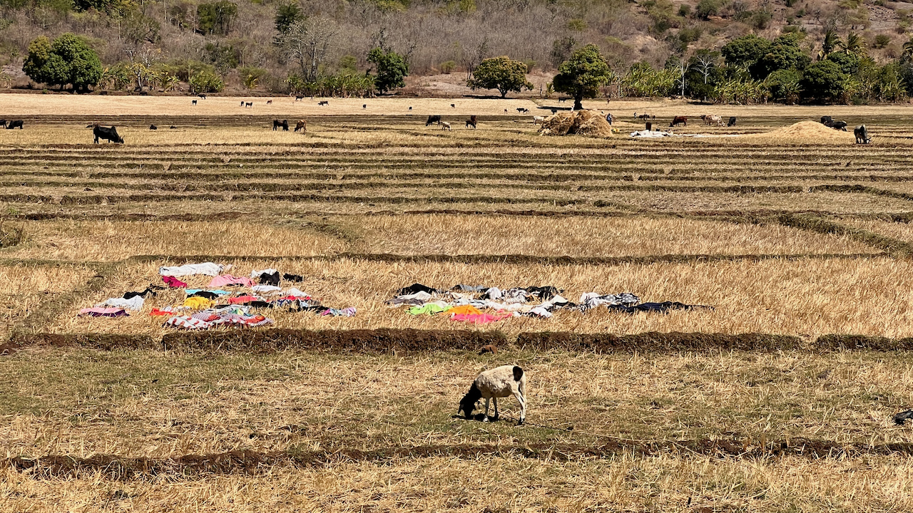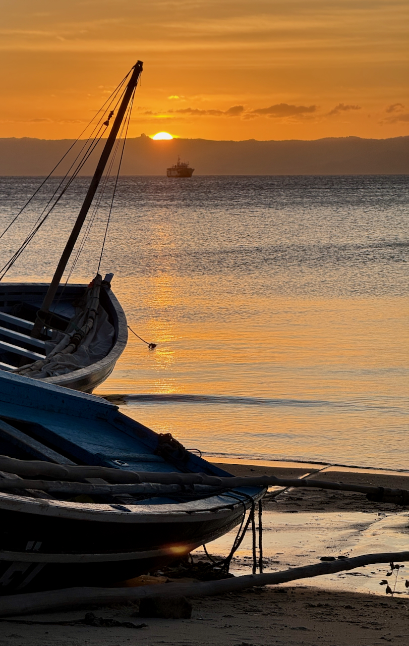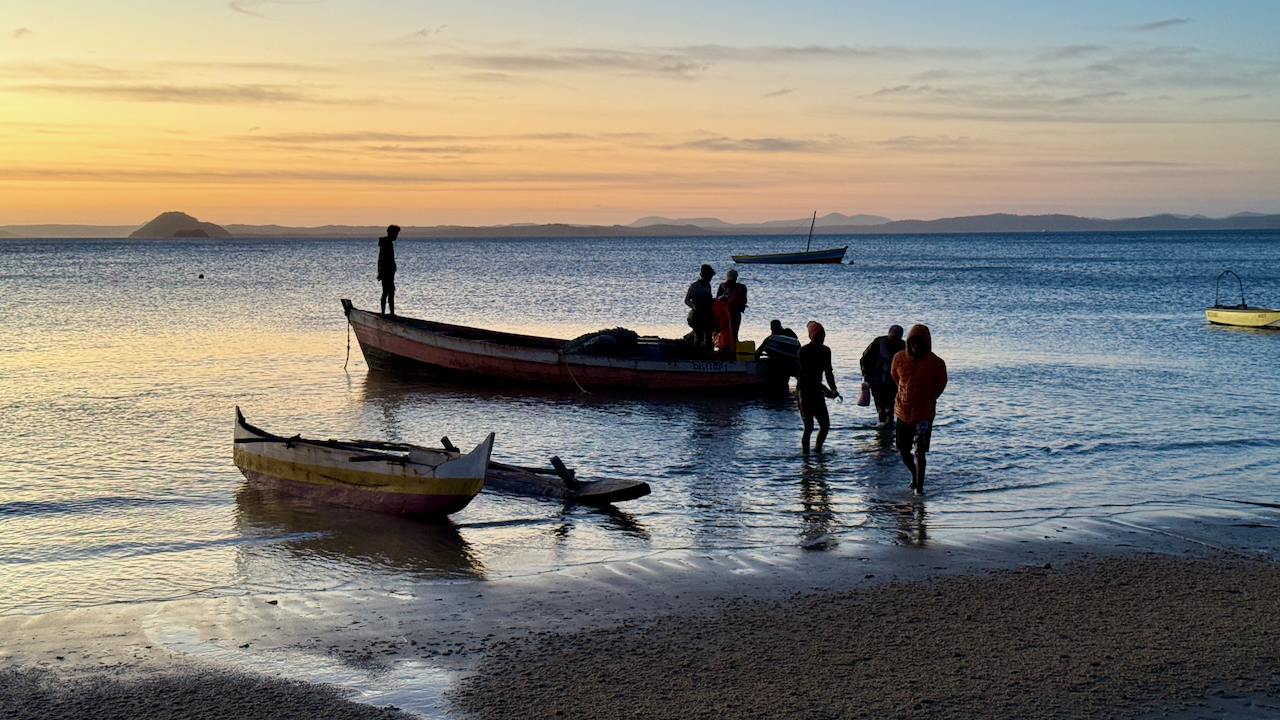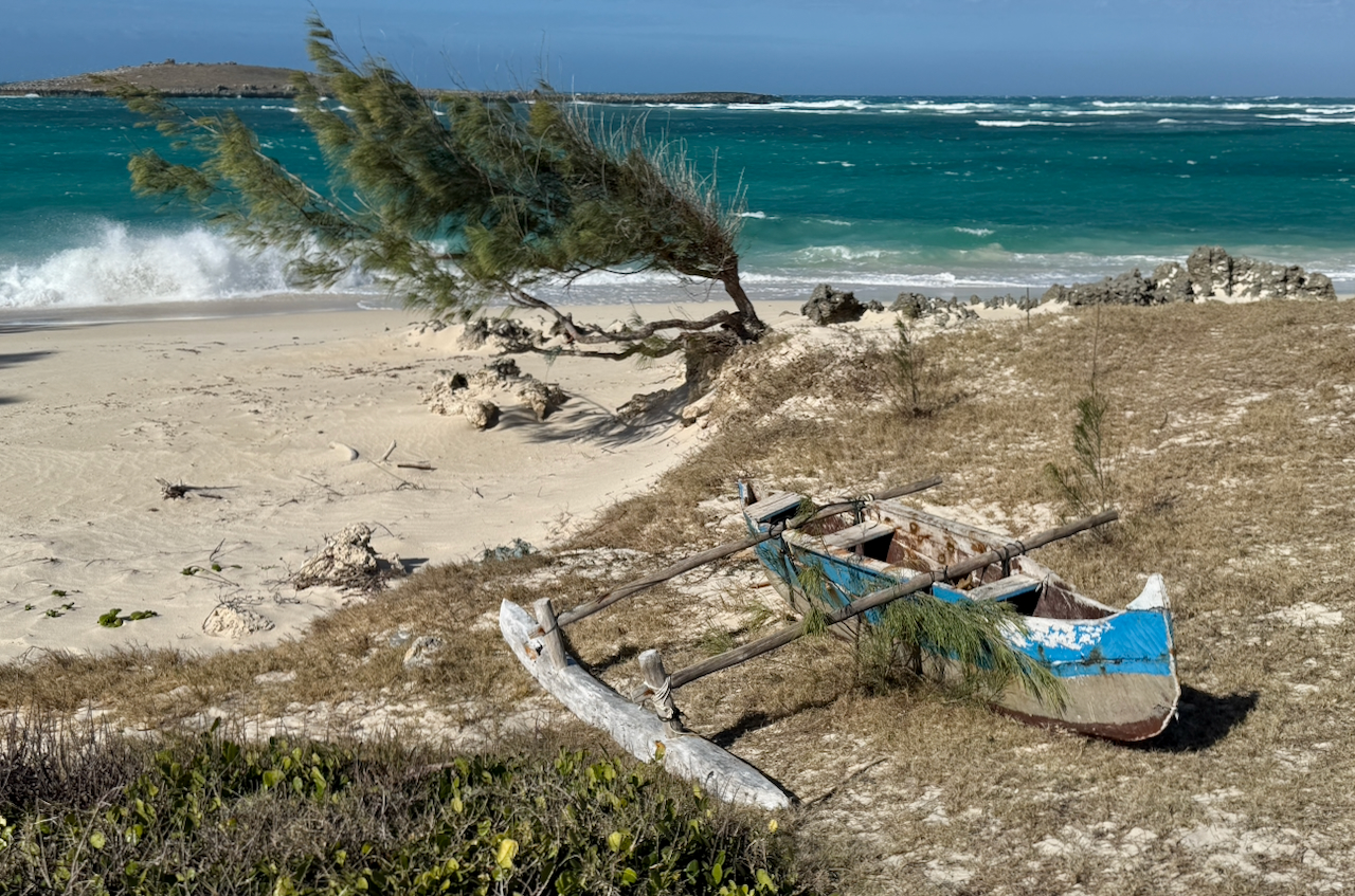 Wie geplant wurden wir nach dem Flug über Dubai, die Seychellen und einer Übernachtung in Antananarivo vom Flughafen in Diego Suarez abgeholt und in die Sakalava Bay gebracht. Die letzten Meter dorthin gleichen einer in den Sand gebaggerten Halfpipe und verdienen das Adjektiv abenteuerlich. Die Hütten der Unterkunft sind schön gelegen und praktisch neu, nur leider dem Starkwind, der täglich 24 Stunden ausnahmslos ballert, schutzlos ausgeliefert.