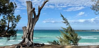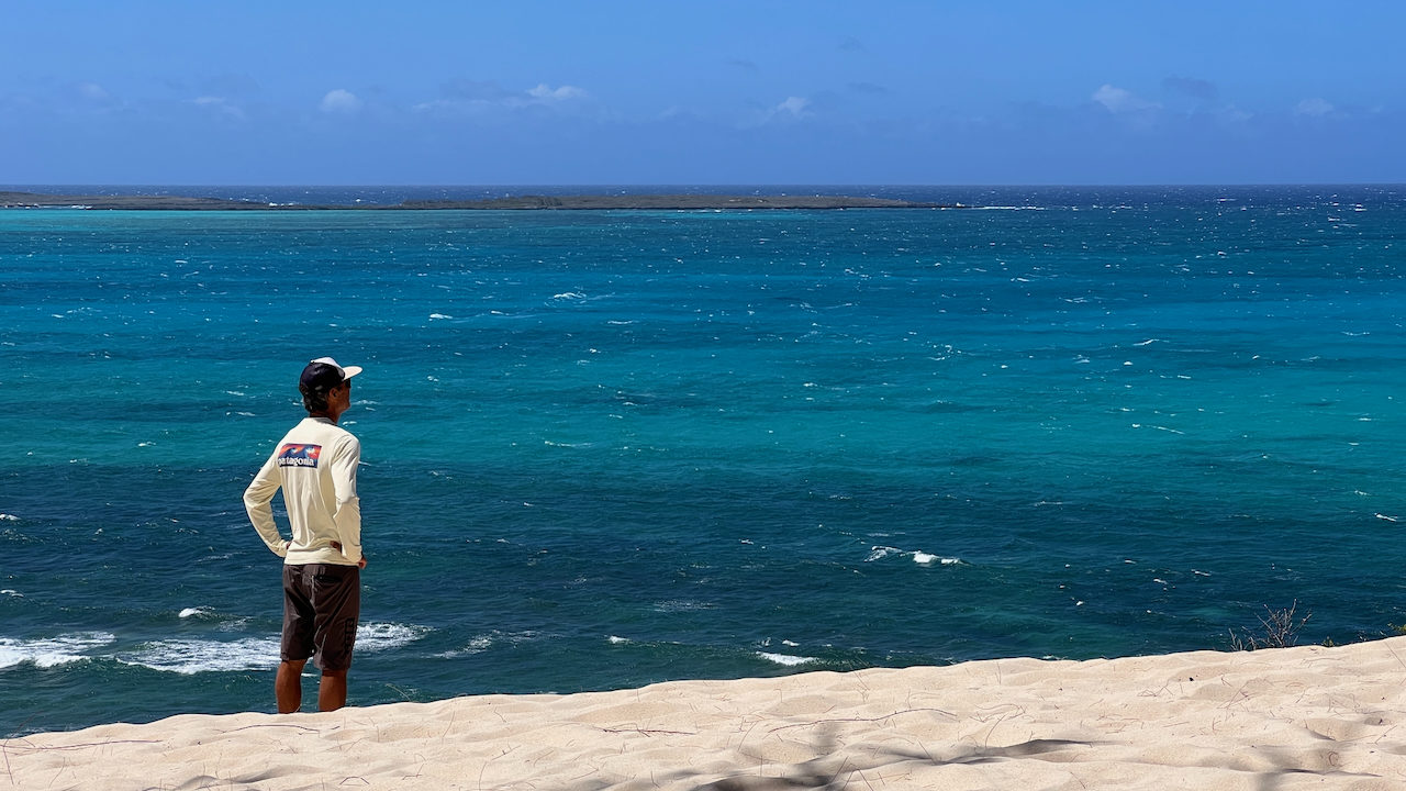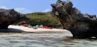 Der zweite Kitespot, im Mer d’Emeraud, gefiel noch besser. Unsere Hütte lag im „Dschungel“, die Dusche im Freien, aber geschützt. Im „Restaurant“ am Hügel traf man sich zum Essen und Plaudern bei traumhaftem Ausblick auf das türkise, windgepeitschte Meer. Die Kitespots „La Piscine“ (feinstes, glasklares Flachwasser) und die Wellen bei der Ilot Suarez übertrafen unsere Erwartungen. Nur die ca. 1,5 m lange Boa, die auf einem Holzdrum des Kitestorages tagsüber schlief, ließ uns ein bisschen nervös sein und alle Taschen vor ihrem Gebrauch vorsichtig aber gründlich durchsuchen 😉.