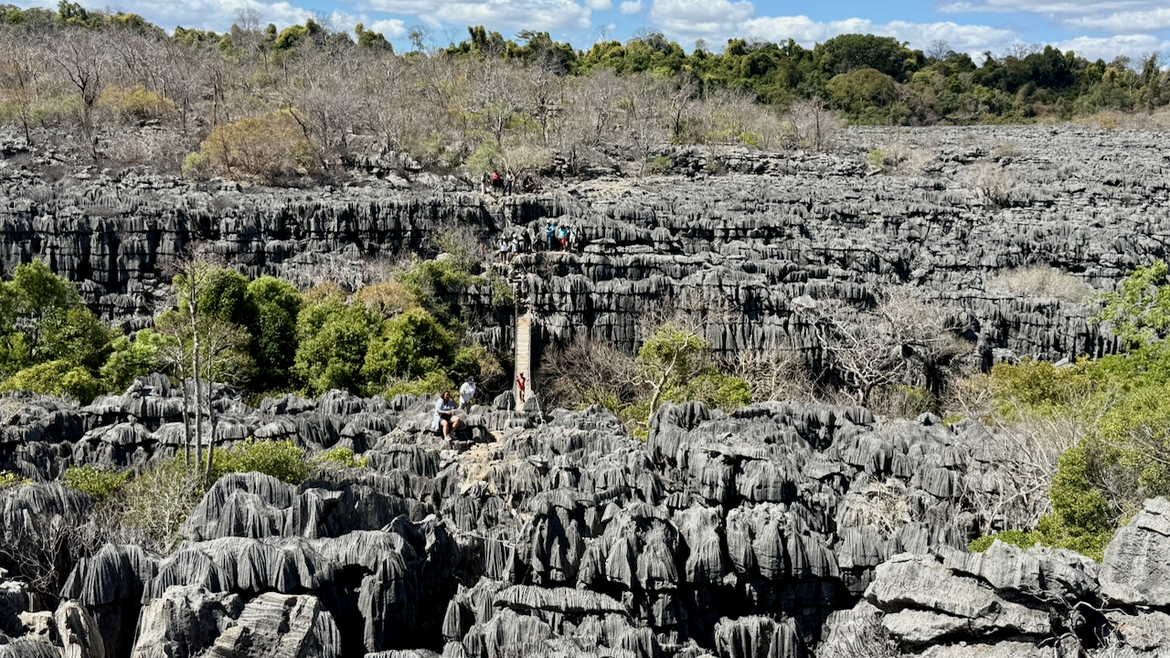 Für die Kultur haben wir auch ein bisschen gemacht. Montagne d’Ambre, Ankarana und Tsingy Rouge sind im Norden gelegene Nationalparks, die wir im Rahmen eines dreitägigen Ausflugs besuchten. Chamäleons, Lemuren (Makis) und spitze Kalk- zw. Sandsteinformationen sind die Hauptattraktionen. Die Bevölkerung ist sehr freundlich aber bitterarm. Wie und unter welchen Umständen die Leute wohnen ist erschütternd. Besonders in der Hauptstadt, in der wir auch 2 Halbtage verbrachten, war das ganz offensichtlich.